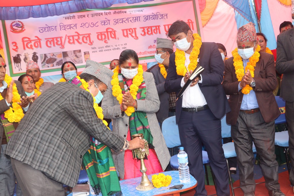 पर्वतको मोदी गाउँपालिकाले उद्योग दिवसको अवसर पारेर गाउँपाालिका स्तरीय स्थानीय घरेलु उत्पादनको प्रदर्शनी कार्यक्रम सञ्चालन गरेको छ । गाउँपालिकाले पर्वतको सवैभन्दा होचो मोदी खोलाको सतह देखि सवैभन्दा अग्लो हम्पालसम्म उत्पादन भएका घरेलु, कृषि, पशु तथा उद्यमहरुको प्रदर्शनी गरेको हो ।