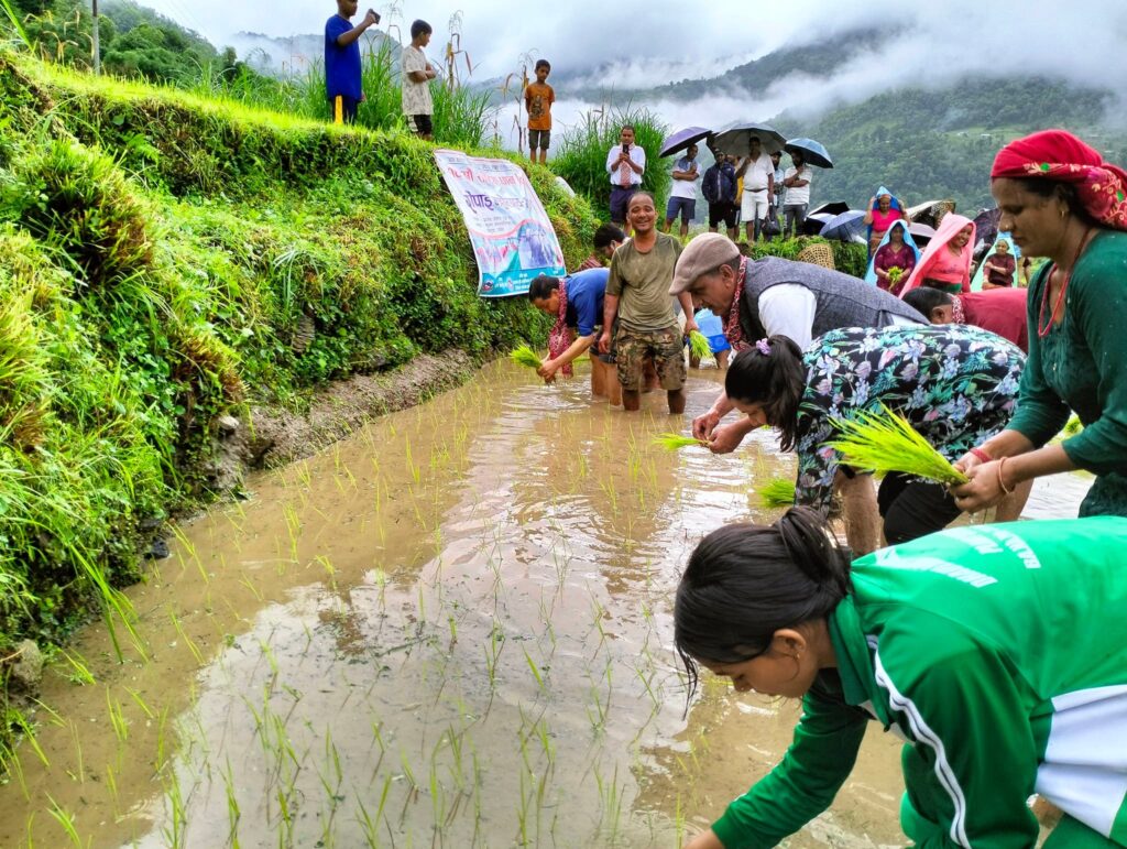कार्यक्रमको अवसरमा बोल्दै जिल्ला समन्वय समिति पर्वतका प्रमुख विष्णुराम विकले पर्वत जिल्लाको मुख्य बाली र उत्पादनका रुपमा रहेको धान खेतीलाई विस्तार र विकासका लागि सवै क्षेत्रको सहयोग उत्तिकै आवश्यक रहेको बताउनुभयो । कार्यक्रममा विकले जिल्ला भरको बाँझो जमिनको तथ्याङ्क संकलन गरी युवा वर्गलाई उत्पादनशिल कार्यमा लगाउन समेत जिल्लाका सम्पूणर् स्थानीय तहलाई आग्रह गर्नुभयो ।